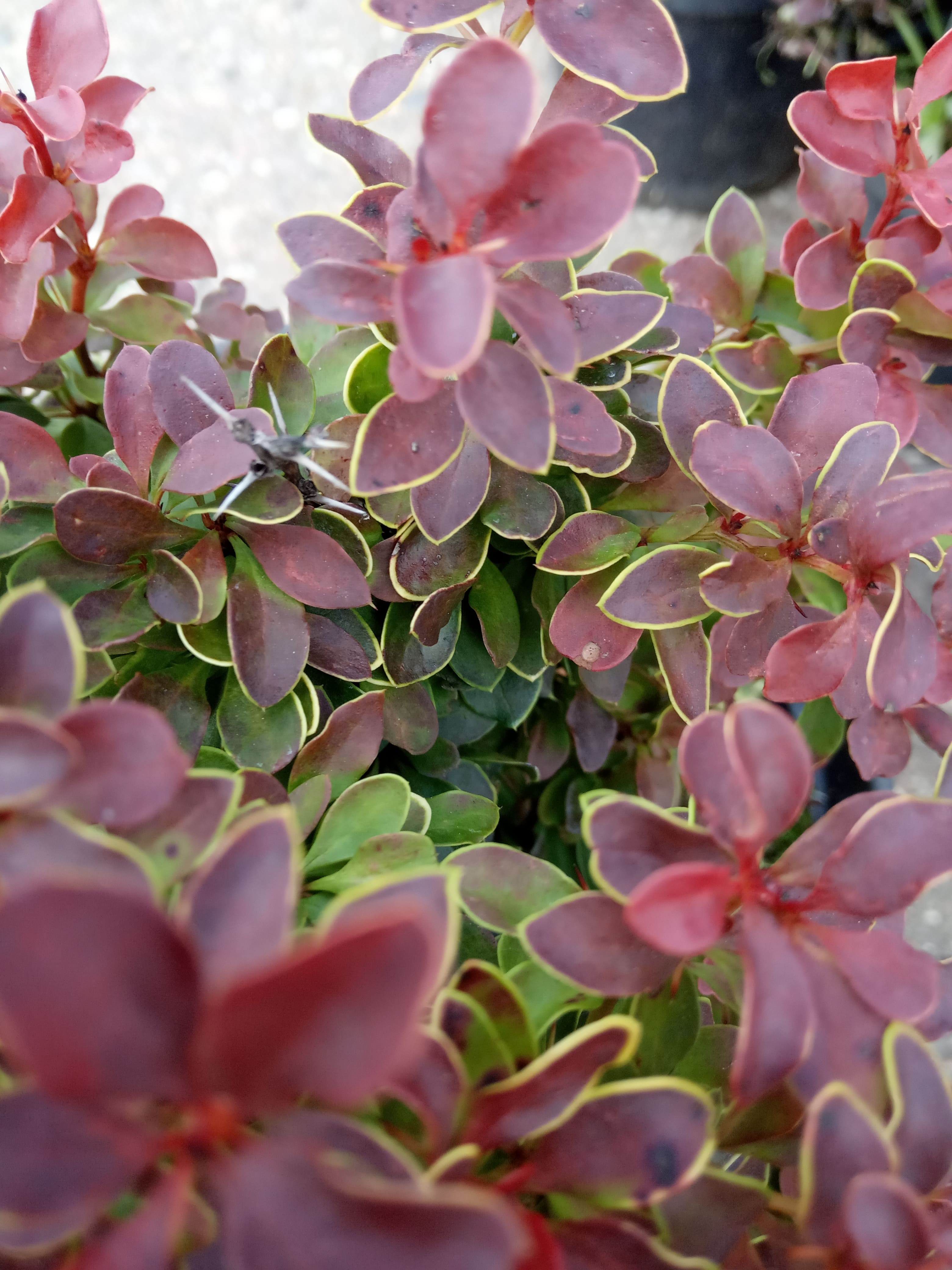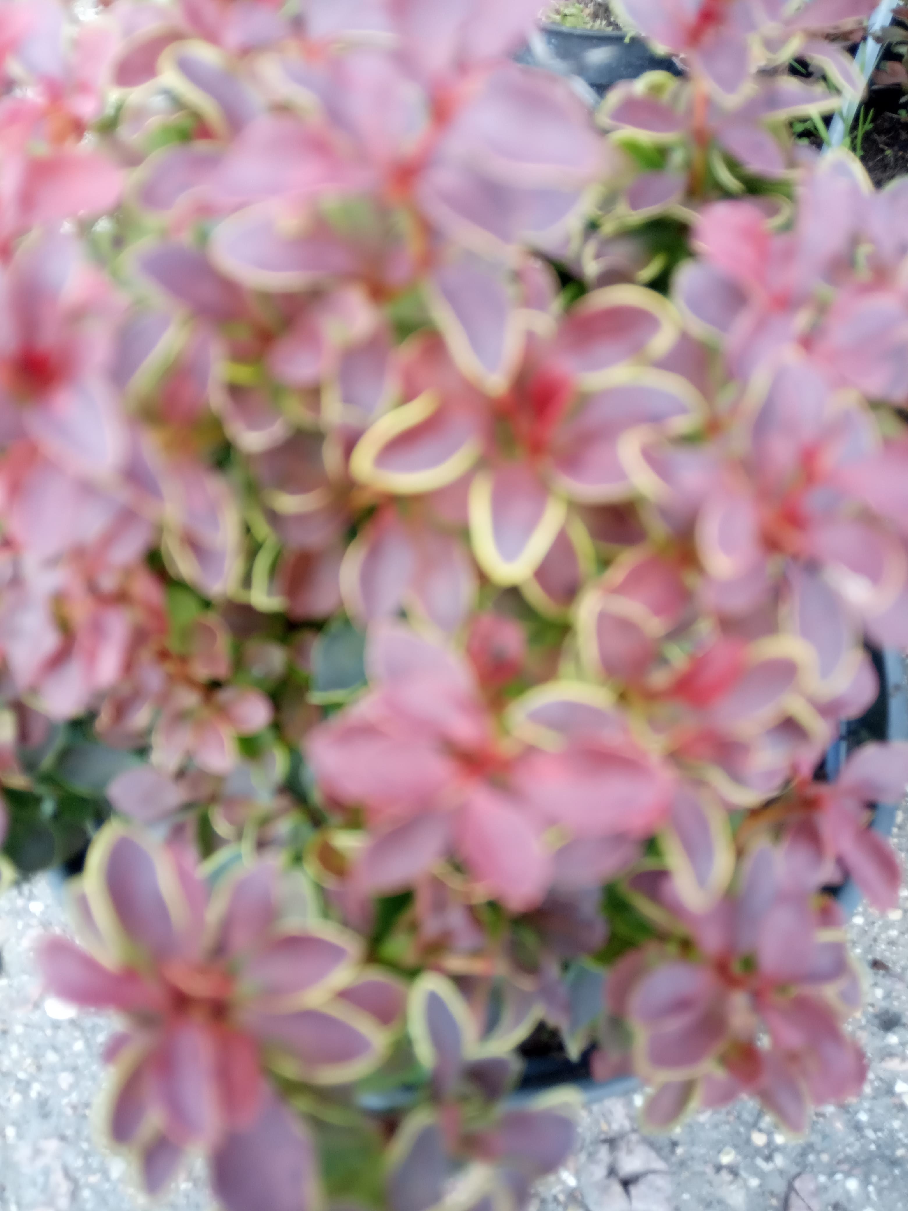 Декоративен компактной, сферической карликовой кроной с листьями насыщенного красного цвета с желтой каймой.