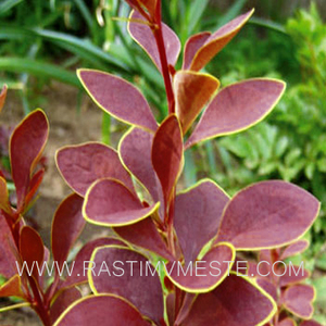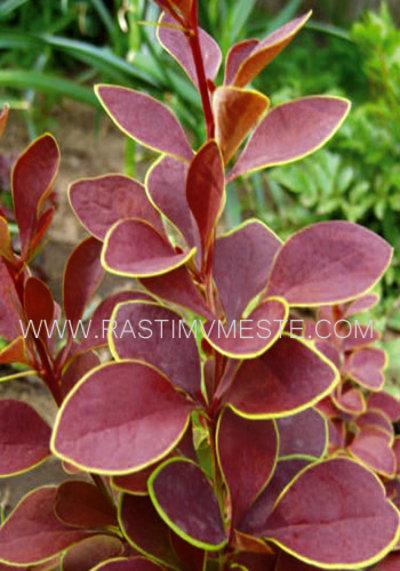 Кустарник с оригинальными листьями и острыми шипами. Вырастает до 2-3 м выс. Листья пурпурно-красные с узким желтым полем. Цветки желтые, V. Ягоды коралловые, долго остаются на кусте. К почве нетребователен. Зимостоек, засухоустойчив. Подходит для живых изгородей, шпалер и цветных композиций.