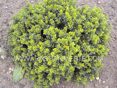 Карликовый кустарник шаровидной формы и острыми шипами. Достигает 0,5 м выс. Листья блестящие, темно-зеленые, осенью ярко-красные. Молодые листья красноватые. Цветки желтые, V. Неприхотлив в отношении почвы. Стойкий к низким температурам. Хорошо переносит стрижку. Подходит на рабатки и для рокариев.