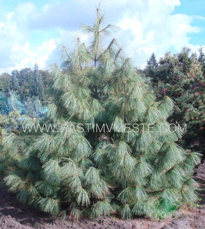 Дерево относительно быстрорастущее, прекрасной плакучей формы, достигающее в возрасте 30 лет ок. 10 м выс. Хвоя сине-зеленая, хвоинки очень длинные (до 20 см), тонкие, собранные по 5 штук, характерно поникающие.