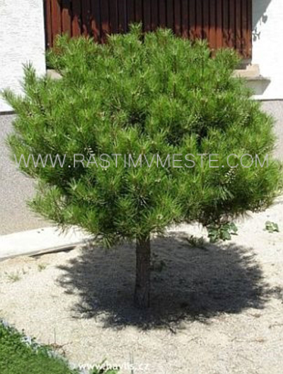 Форма кроны плоскошаровидная. Растет довольно медленно. В возрасте 10 лет достигает 0,8 м в диам. Старые растения достигают 6 м. Хвоя светло-зеленая, собранная по 2 в пучке. Рекомендуется для японских, каменистых и вересковых садов.