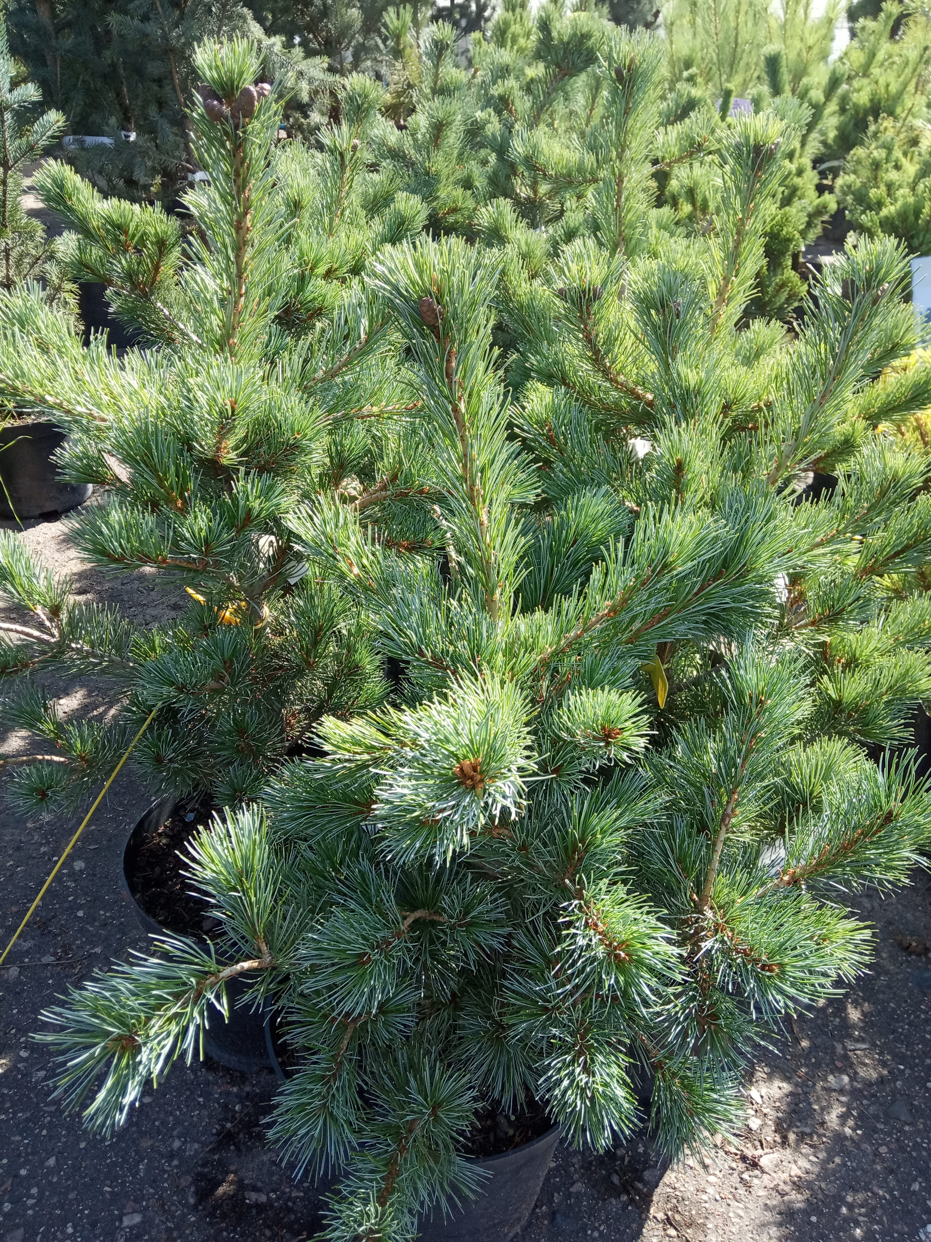 Один из красивейших сортов сосны, характерен медленным ростом, нерегулярной широкопирамидальной формой, в 30 лет высотой около 4 м. Побеги твёрдые, покрыты голубовато-зелёными, скрученными иглами, собранными по пять. Рано образует шишки, которые долго остаются на растении.