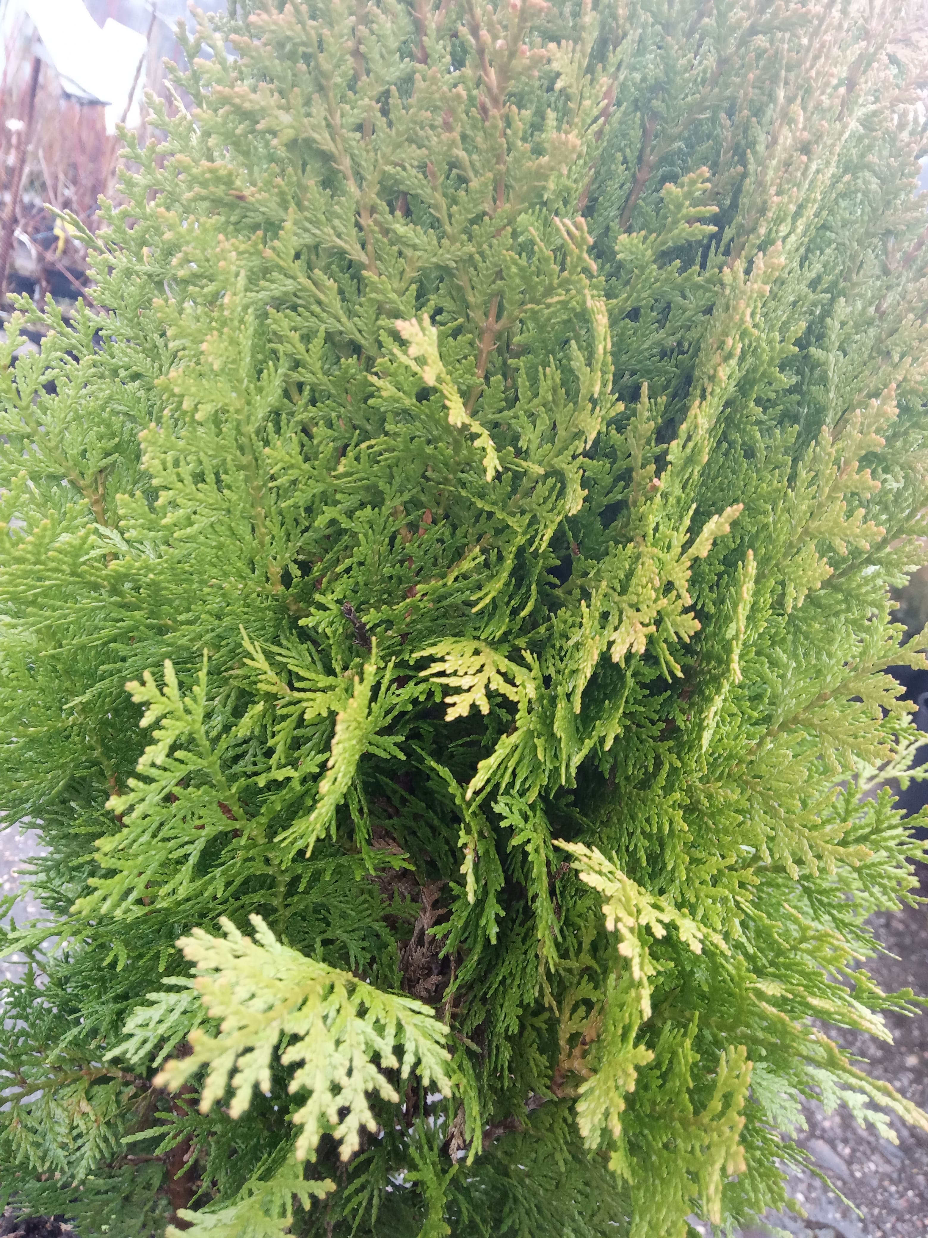 Хвоя чешуевидная, желто-зеленая, широкоромбическая, плотно прижатая к стеблю. На солнце золотисто-зеленая, зимой с бронзовым оттенком.