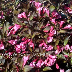 Компактный медленнорастущий кустарник до 1 м выс. Листья коричнево-красные. Цветки снаружи пурпурно-красные, внутри бледно-розовые, собраны по несколько, VI-VII. Предпочитает влажные, богатые и пропускаемые почвы. Для одиночной посадки, в группах, в контрастных цветовых композициях, подчеркивая необычную окраску.