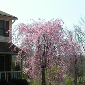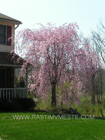 Небольшое дерево с плакучей, раскидистой кроной, предлагаемое в штамбовой форме. Выс. дерева зависит от высоты прививки. Листья средние. Цветки нежно-розовые, IV-V. Плоды немногочисленные, декоративные. Лучше растет на не слишком сухих почвах, богатых кальцием. Хорошо переносит городские условия.
